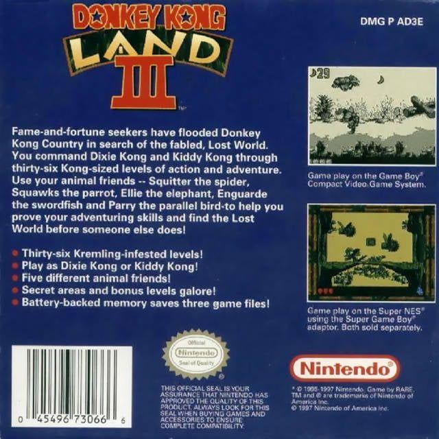 Les chercheurs de gloire et de fortune ont inondé Donkey Kong Country à la recherche du légendaire monde perdu. Vous commandez Dixie Kong et Kiddy Kong à travers 36 niveaux d'action et d'aventure à la taille de Kong. Utilisez vos amis animaux - Squitter l'araignée, Squawks le perroquet, Ellie l'éléphant, Enguarde l'espadon et Parry l'oiseau parallèle - pour vous aider à prouver vos talents d'aventurier et à trouver le monde perdu avant que quelqu'un d'autre ne le fasse !