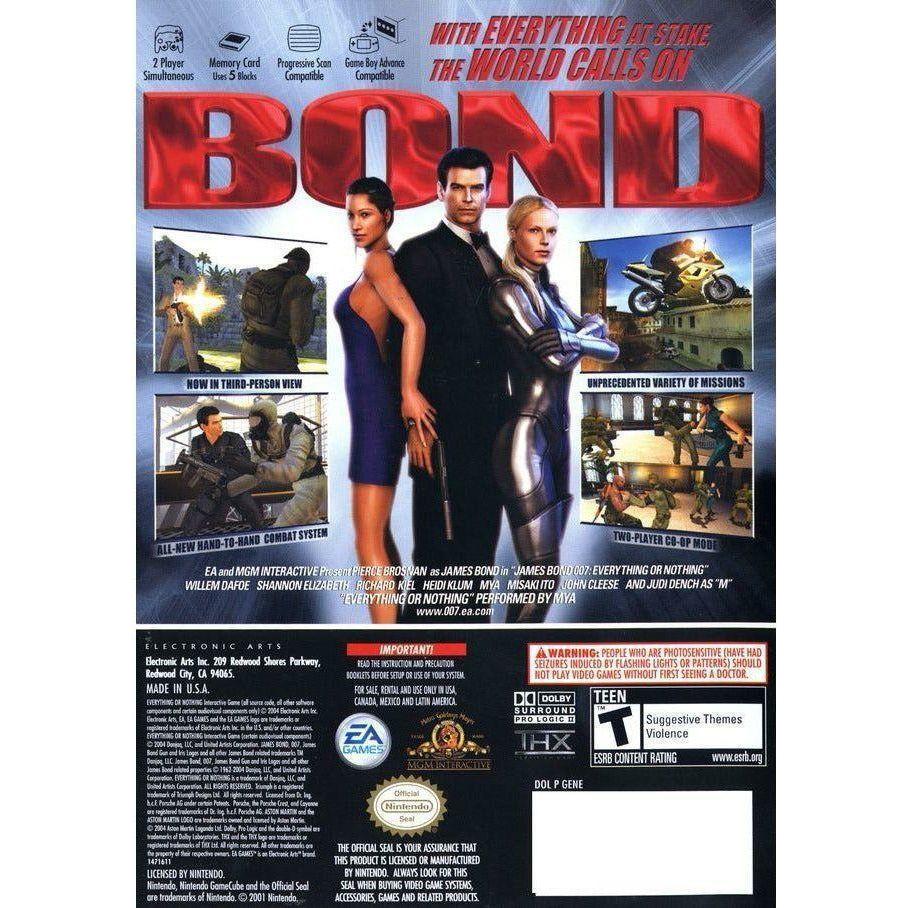 Everything or Nothing est le deuxième des jeux de tir à la troisième personne de James Bond, après Tomorrow Never Dies pour Playstation. Le jeu propose de nouvelles armes et un nouveau système de visée amélioré qui vous permet de serrer stratégiquement les murs et de tirer autour ou de vous accroupir derrière un abri. De nouveaux gadgets permettent à Bond de devenir invisible, de perturber l'électronique ou de contrôler des araignées mécaniques qui lui permettent d'accéder à de nouvelles zones. Everything or Nothing est également le premier jeu dans lequel Pierce Brosnan fournit sa voix pour représenter son personnage, ainsi que de nombreux autres comme Judi Dench et John Cleese.