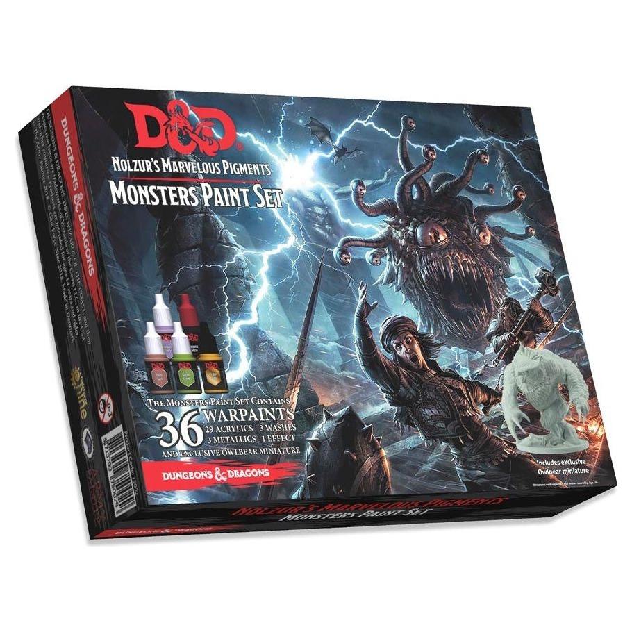 The Monster Paint Set is what a hardcore painter needs to expand on their technique of painting umber hulks and bugbears! This set includes 36 paints: 29 acyrlic, 2 metallic, 3 washes, and 2 effects paints. Also it comes with a free EXCLUSIVE miniature!