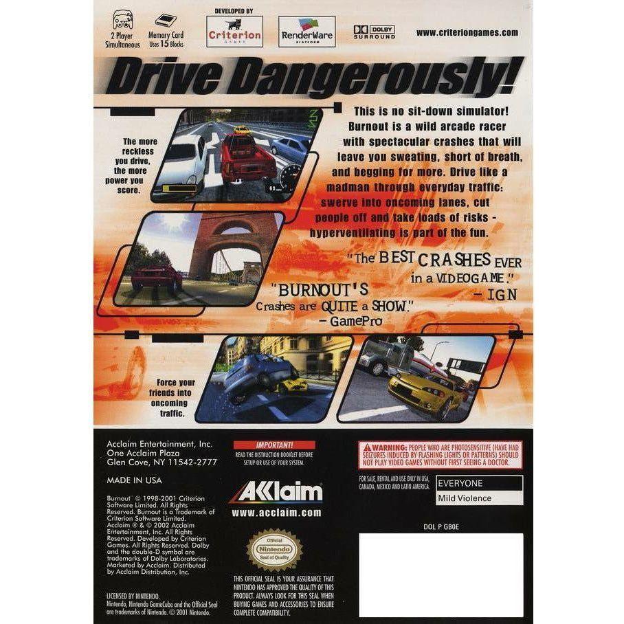 Burnout is an arcade style racing game in the mold of the Test Drive or Need For Speed series. In this game, you are racing on realistic streets with real traffic to contend with.