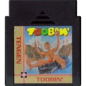 Toobin' involves Biff and Jet racing their way down the rapids of a river, riding on tires. You rotate your tyre left or right, and drift as the current sends you, making sure to avoid the banks of the river, and the dividing lines in the middle. Hazards include crocodiles, stray logs and branches, and fishermen - you are armed with a limited supply of tin cans to take care of these. There are gates to slide through on the way down - these give you a points bonus. Each level has a strict time limit to adhere to, although there's a kickin' party at the end if you succeed.